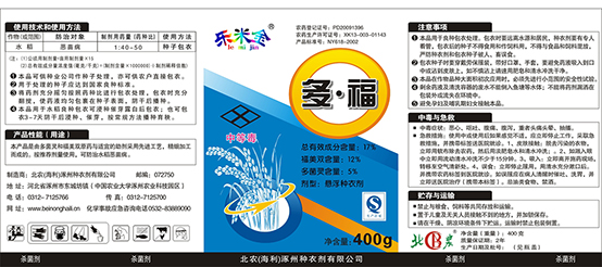 北農(海利)涿州種衣劑有限公司是由中國農業大學與湖南海利化工股份有限公司于1998年4月合資成立的有限責任公司。公司主要從事懸浮種衣劑、干粉種衣劑、懸浮劑、可濕性粉劑、水乳劑等農藥的研發、生產和銷售。
